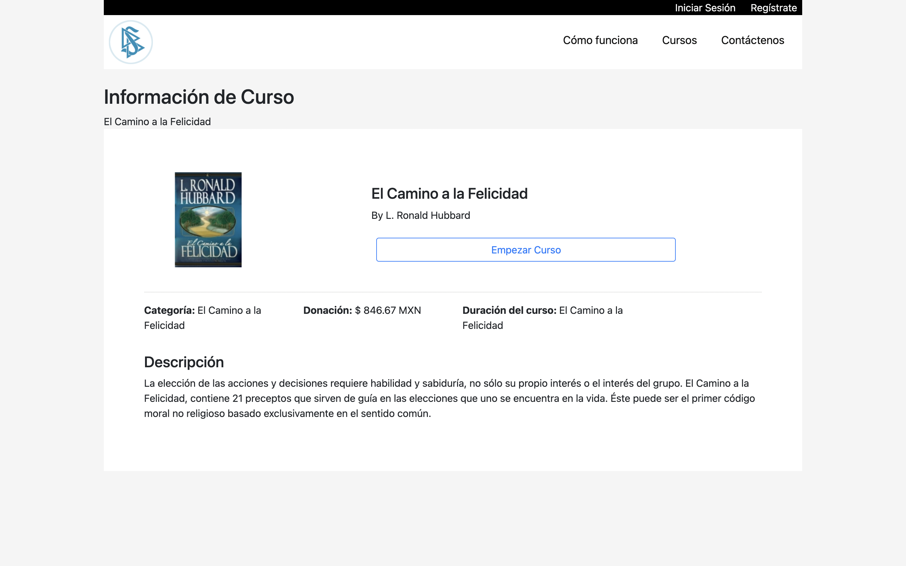 Una vez registrado será redirigido al curso seleccionado y un botón con el texto de "Comprar Curso" dando un clic al mismo.