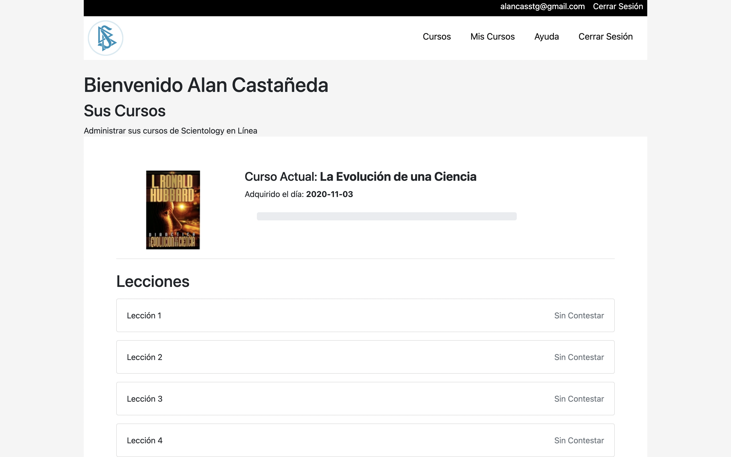 Después de realizar la compra de forma exitosa será redirigido a la página de "Mis Cursos" donde podrá observar el curso adquirido, las lecciones desglosadas y los cursos terminados.