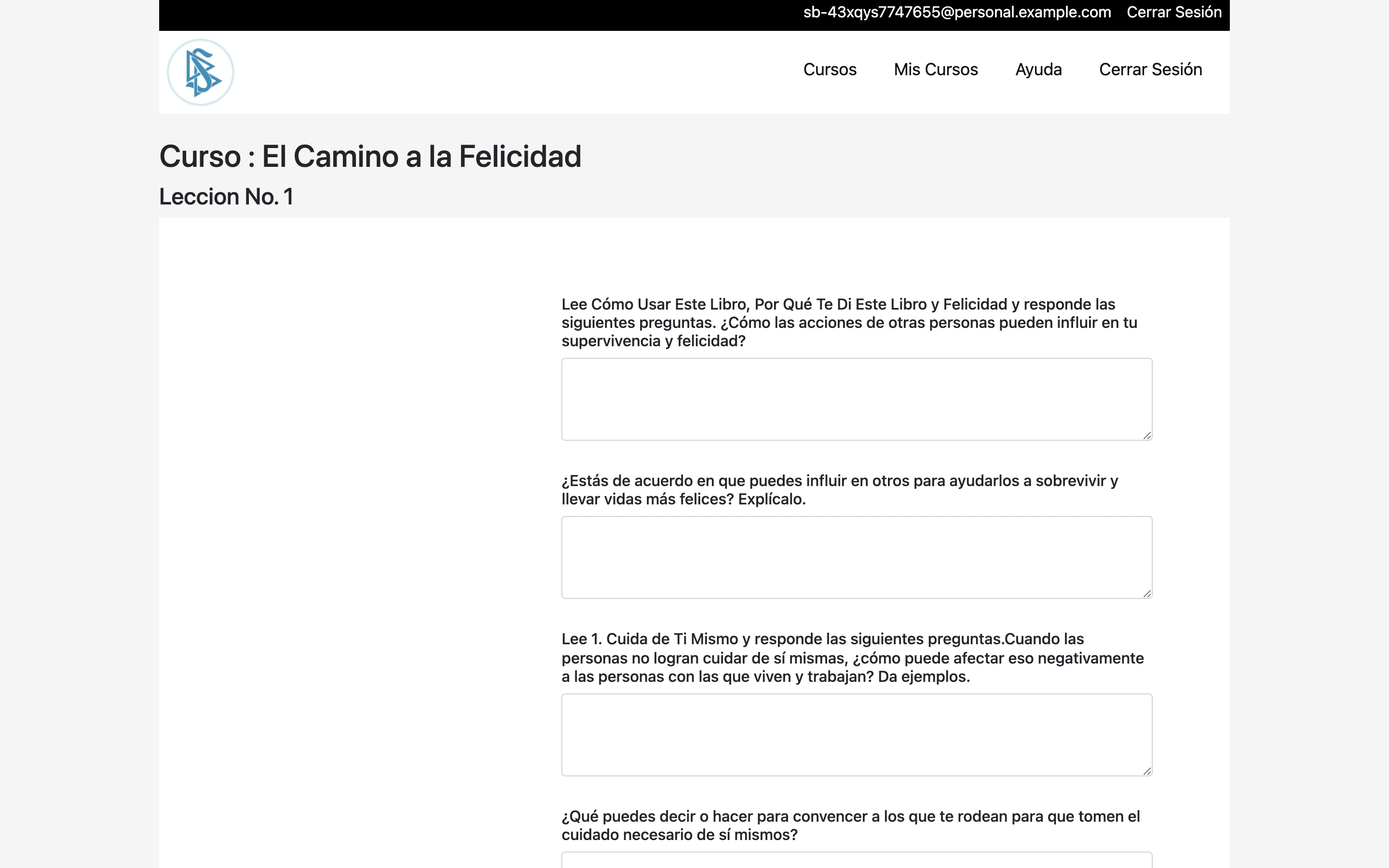 Una vez seleccionando una lección se desglosaran las preguntas correspondientes a contestar.